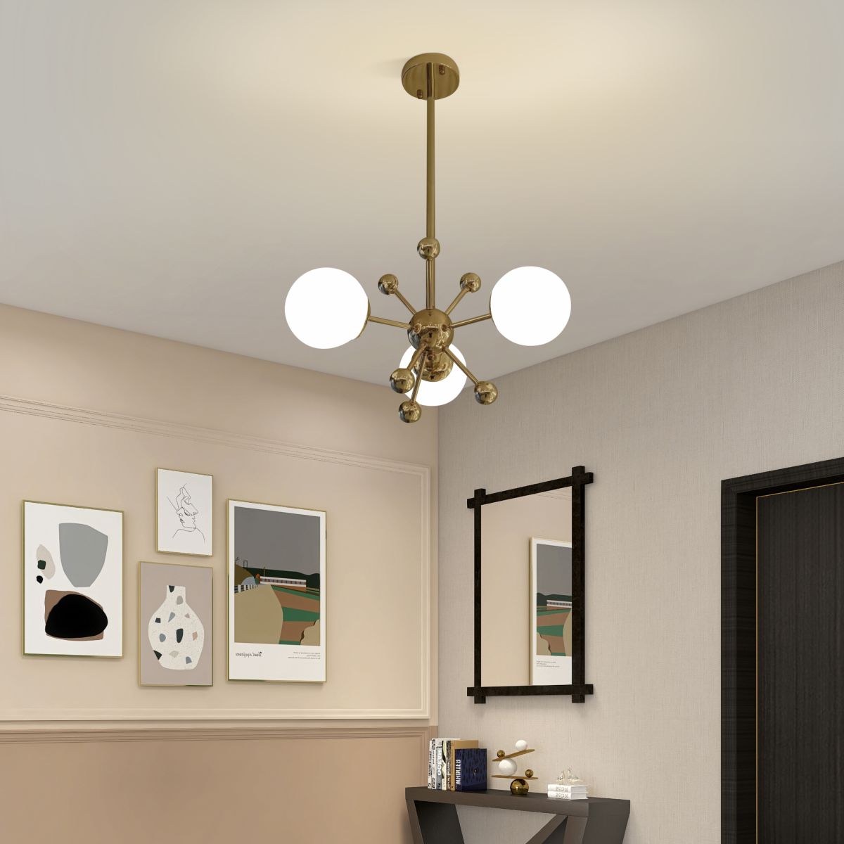 Оригинальная композиция, объединяющая стеклянные плафоны - сферы и металлическую арматуру, актуальна для освещения современных интерьеров. Люстра потолочная в современном стиле - отличный выбор для тех, кто хочет добавить в квартиру уют. Благодаря уникальному дизайну, светильник идеально подходит как для современного, так и для традиционного интерьеров. Плафоны сферической формы изготовлены из матового стекла, за счет этого освещение мягкое, что обеспечивает максимальный комфорт для глаз. Такой светильник станет самостоятельным украшением в любой интерьер. Люстра будет хорошо смотреться практически в каждой комнате, особенно хорошо подойдет люстра в спальню. Благодаря удивительному дизайну и высокому качеству люстра потолочная - это не просто функциональный осветительный прибор, это настоящий декор для дома, который добавит нотку роскоши и изысканности в любую комнату. Светильник для ресторана и кафе или офиса и студии как для себя, так и в качестве подарка.